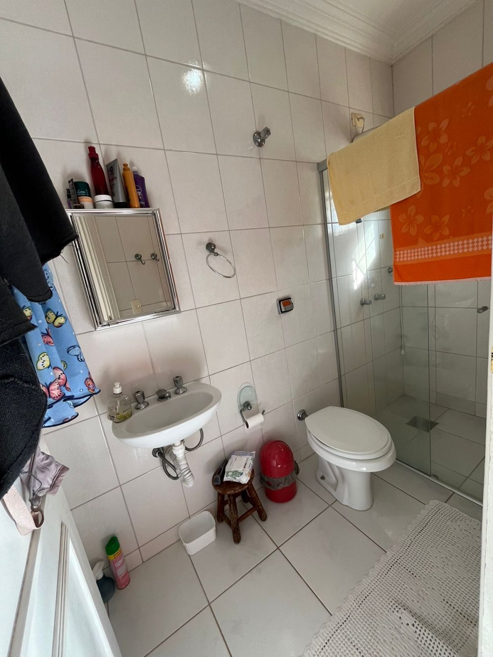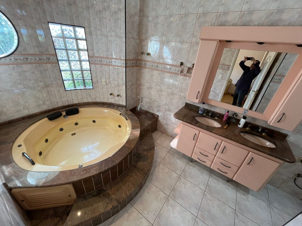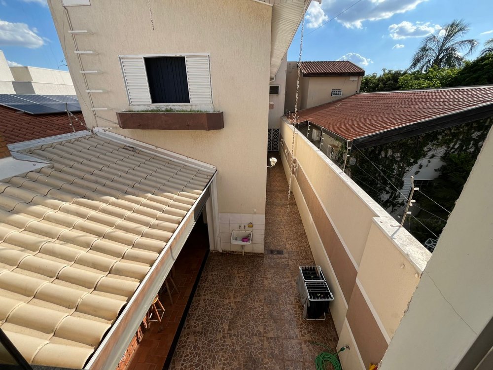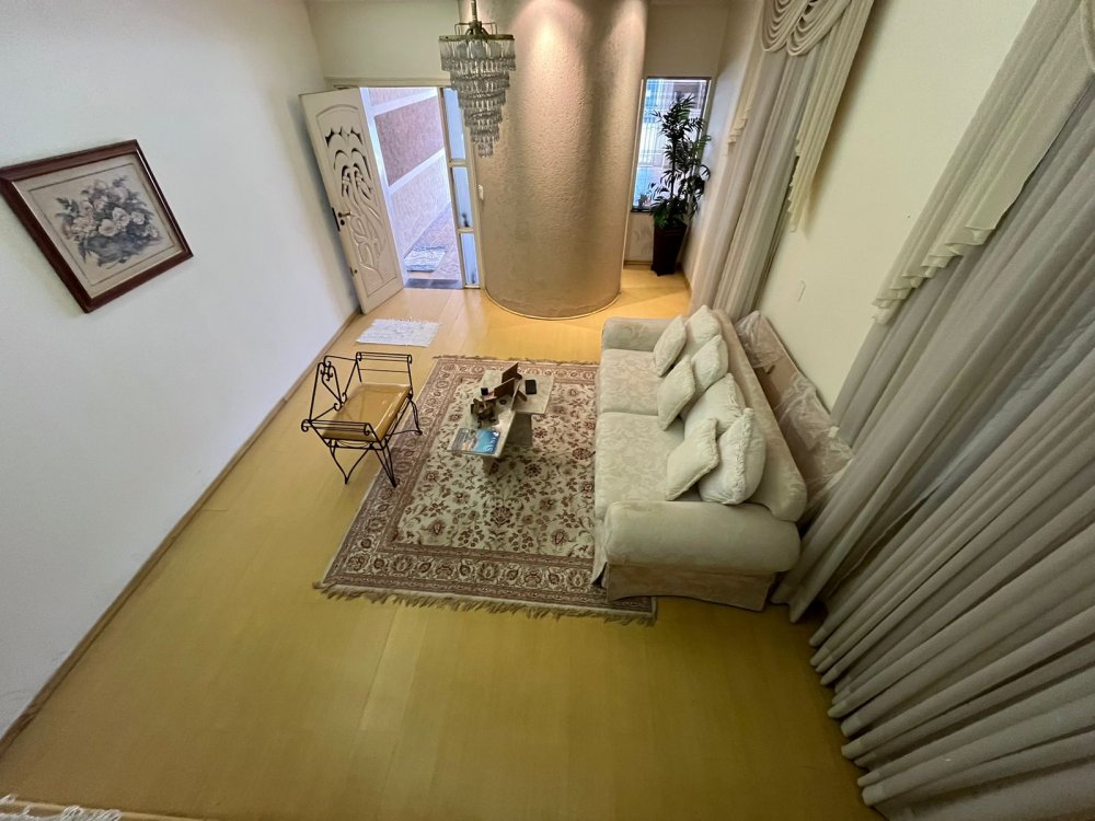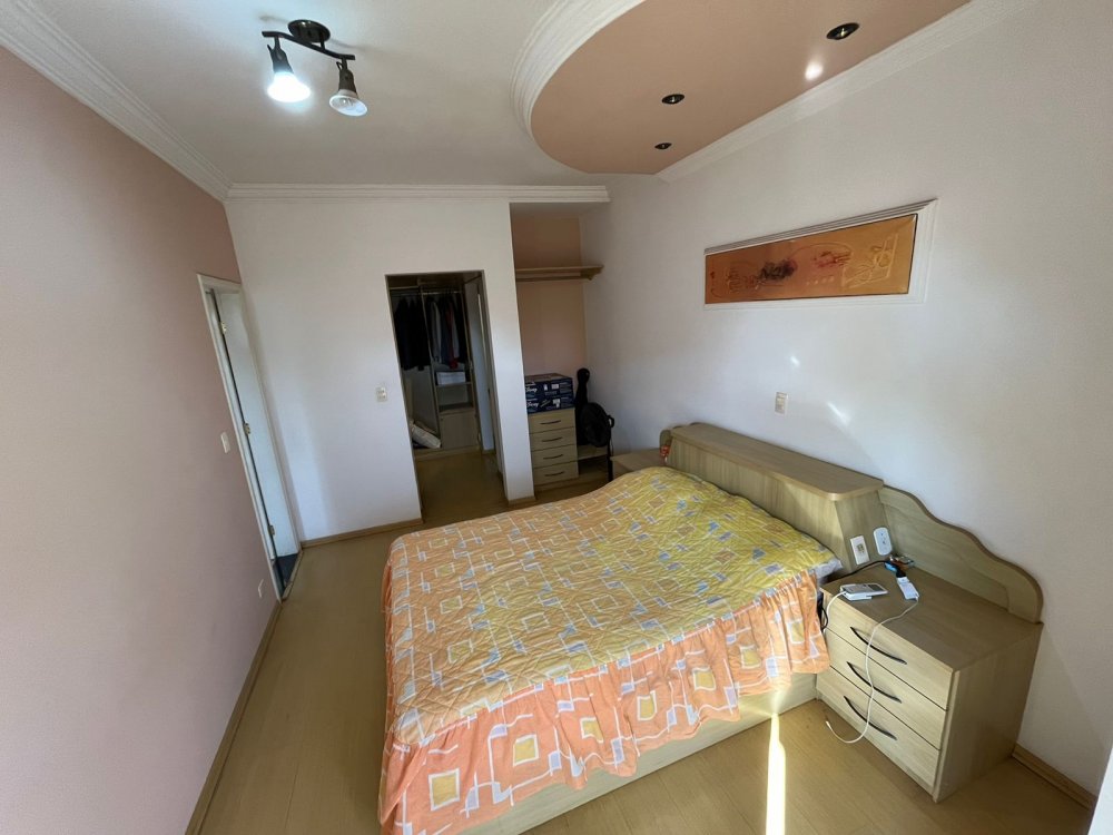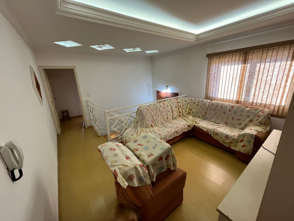 PISO DE CIMA DA CASA DA FRENTE: possui sala de tv, banheiro social, corredor de circulação e 3 dormitórios completos de armários (sendo o dormitório da suíte máster com destaques para o belo closet e área de banho com bastante espaço com banheira). O dormitório suíte é virado para a rua conectado a sacada estendida com uma vista panorâmica para o bairro.