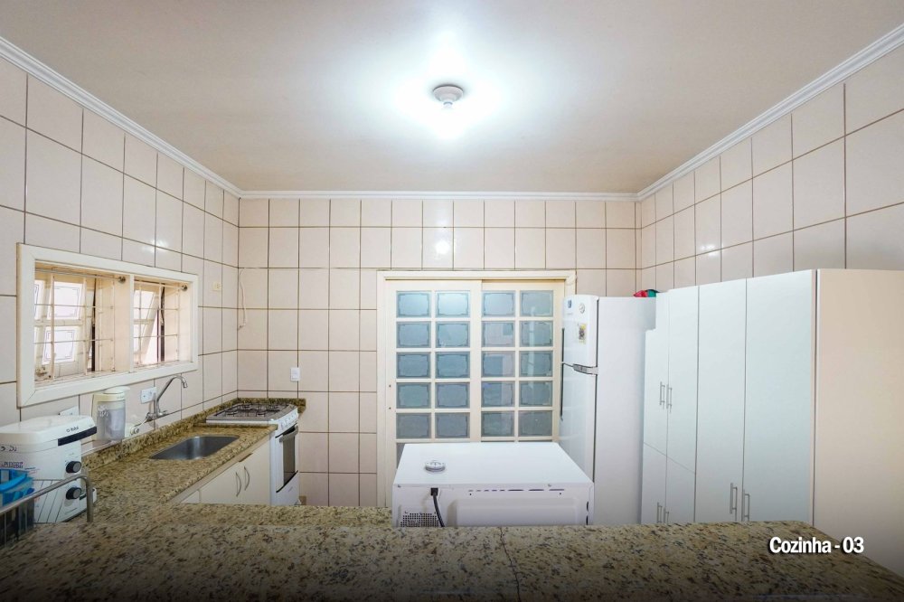 3 quartos, sendo uma suíte com móveis planejados, 1 dormitório com armários embutidos, cozinha americana e área de serviço interna também com armários embutidos, living estendido com sala ampliada para ambientes de estar, TV e Jantar com conceito aberto e moderno, 1 banheiro social. Área para jardim de inverno, cômodo de apoio usado como escritório e 2 vagas de garagem cobertas, possuindo portão eletrônico.