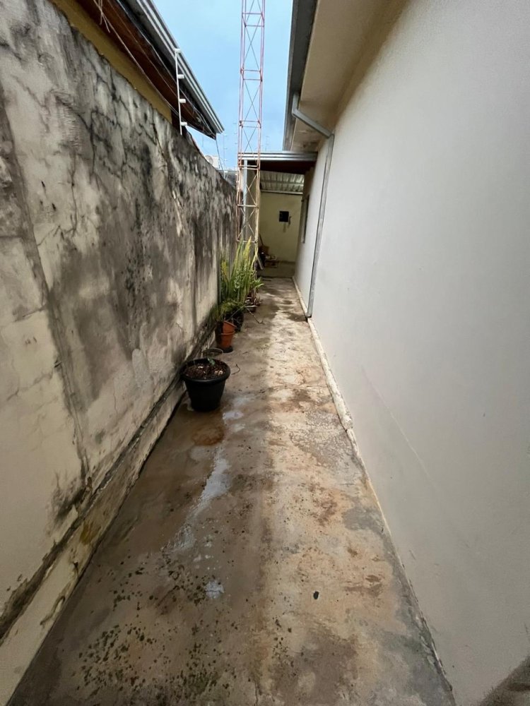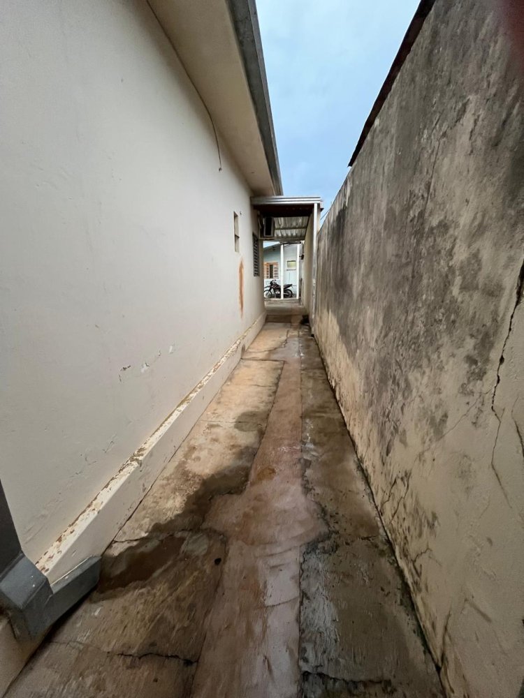 ÁREA DA FRENTE BASTANTE AMPLA COM GARAGEM COBERTA COM CAPACIDADE PARA ESTACIONAR 3 CARROS.APROVEITANDO CORREDOR LATERAL COM BOA LARGURA COM ÁREA DE LUZ.
