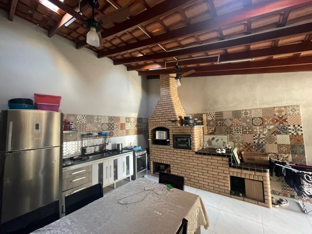NOS FUNDOS quintal com area de serviço e espaços gourmet com área de churrasqueira e fogão a lenha com banheiro social de suporte para as visitas.