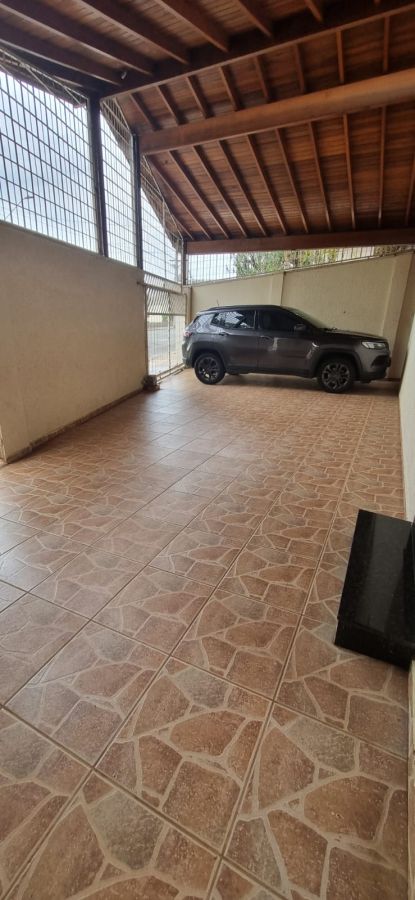 Ampla Área Frontal Coberta que acomoda 3 vagas de garagem com portão eletrônico.
