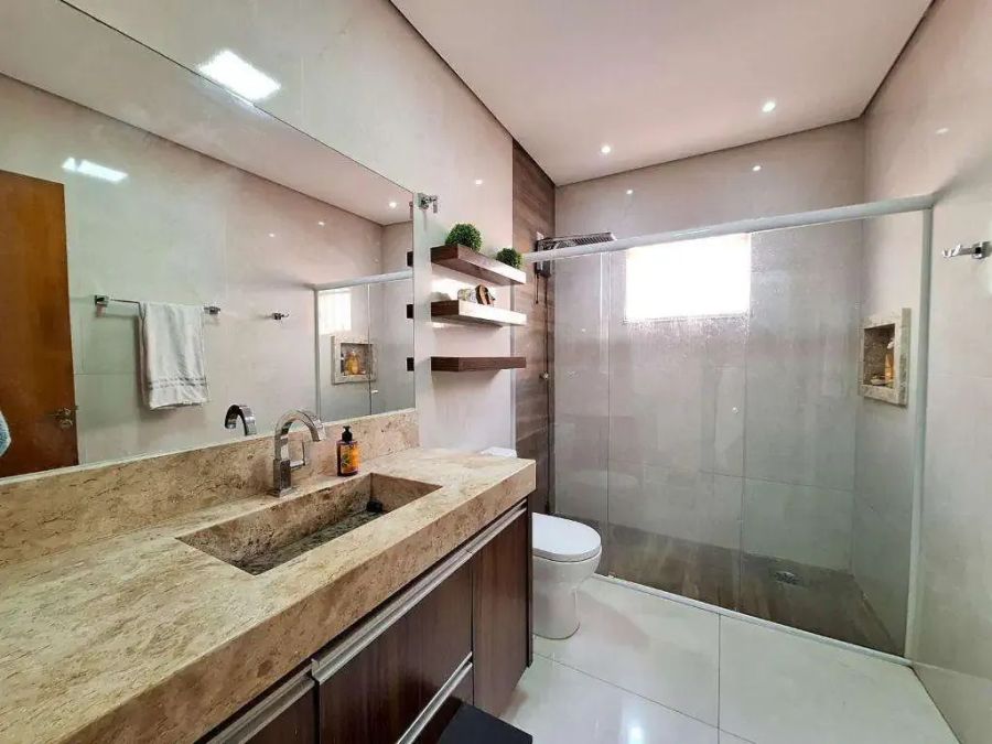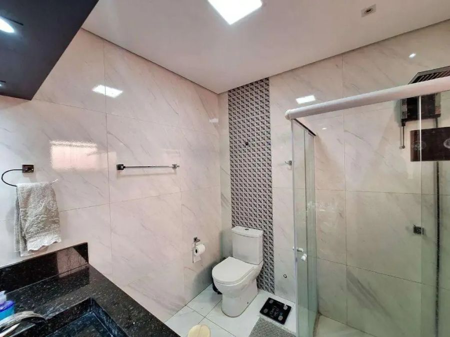Acabamento de primeira, o imóvel tem piso em porcelanato, teto em gesso, iluminação pronta, portão eletrônico e interfone.