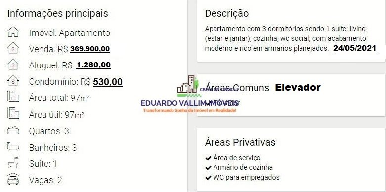 - Área Total: 97 m² (R$ 3.814/m²)