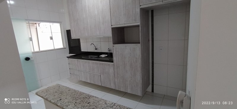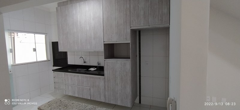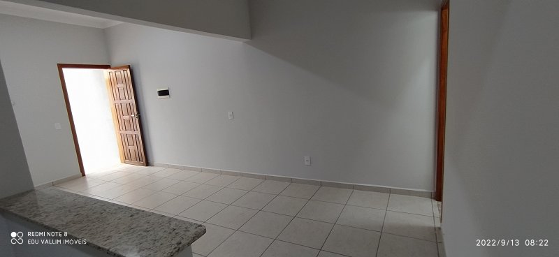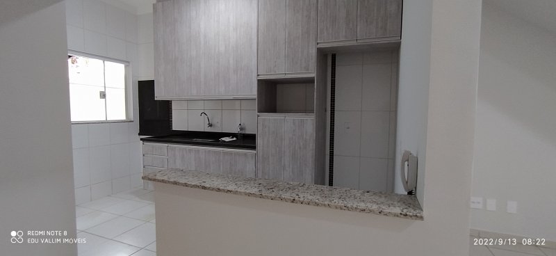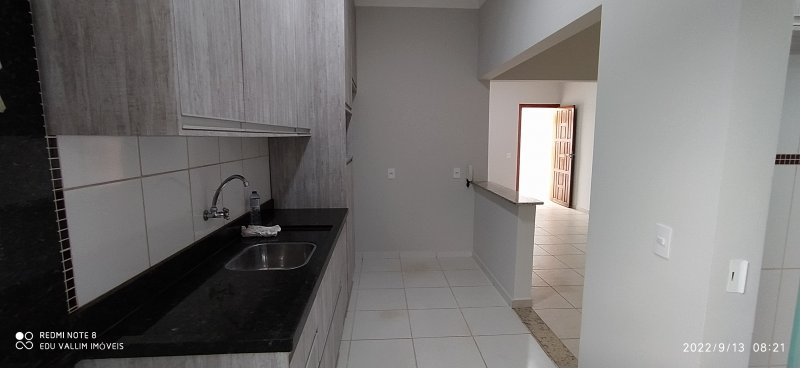 PISO TÉRREO: SALA ESTENDIDA PARA AMBIENTES DE TV E JANTAR, COZINHA COM ARMÁRIOS, 1 BANHEIROS SOCIAL E ÁREA DE SERVIÇO COM ARMÁRIOS SUPERIORES.