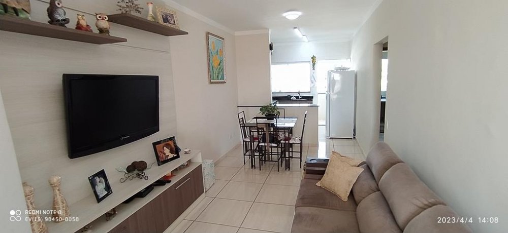 Apartamento no 2º ANDAR (2 LANCES DE ESCADA) com 79,12m de área privativa / construída, com ampla sala que acomoda 2 ambientes: TV e Jantar integrada a sacada estendida,