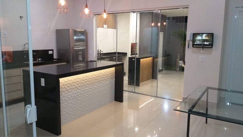 CONTA COM 3 SUÍTES, 5 BANHEIROS, ESCRITÓRIO C/ AR-CONDICIONADO, COZINHA, SALA ESTAR E JANTAR C/ PÉ DIREITO ALTO, ÁREA SERVIÇO, GARAGEM P/ 3 CARROS, CÂMERAS DE VIGILÂNCIA, CERCA ELÉTRICA, FINO ACABTO.