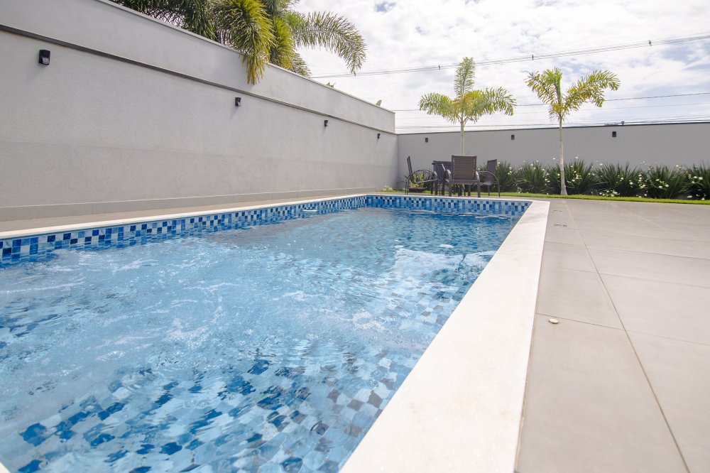 PISO TÉRREO: com sala de tv reservada, lavanderia, banheiro.divididos em 03 suítes, sendo a máster com closet, ampla sala de estar, sala TV, sala jantar, cozinha com ilha, lavanderia, despensa, área gourmet com churrasqueira, piscina aquecida, garagem para 02 carros, sendo 02 vagas cobertas.