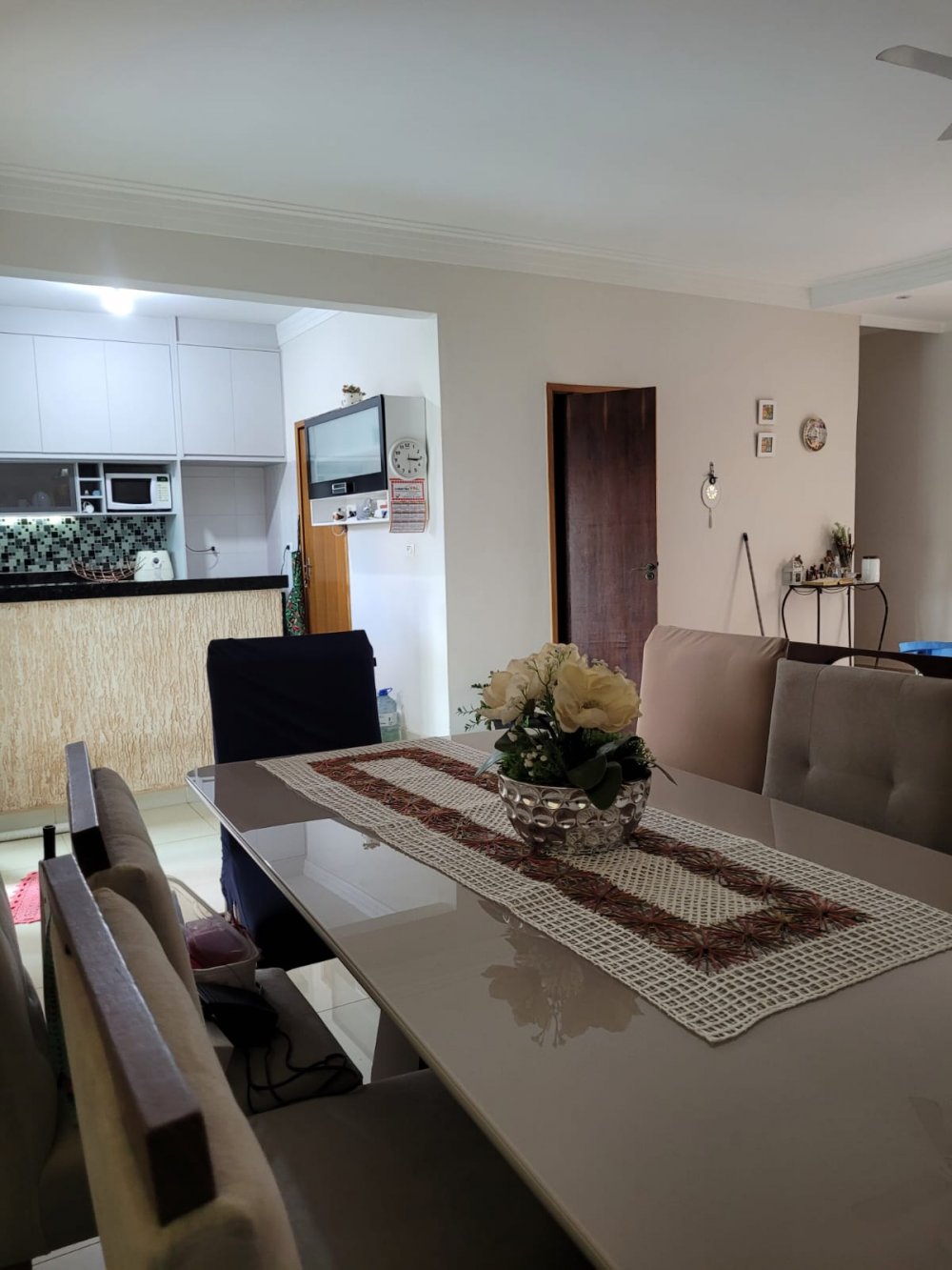 DESTAQUE PARA O CONCEITO MODERNO COM AMBIENTES ABERTOS COM A SALA DE TV CONECTADA A SALA DE JANTAR INTERLIGADA À COZINHA AMERICANA TODA PLANEJADA COM ARMÁRIOS NOVOS E BALCÃO / ILHA.