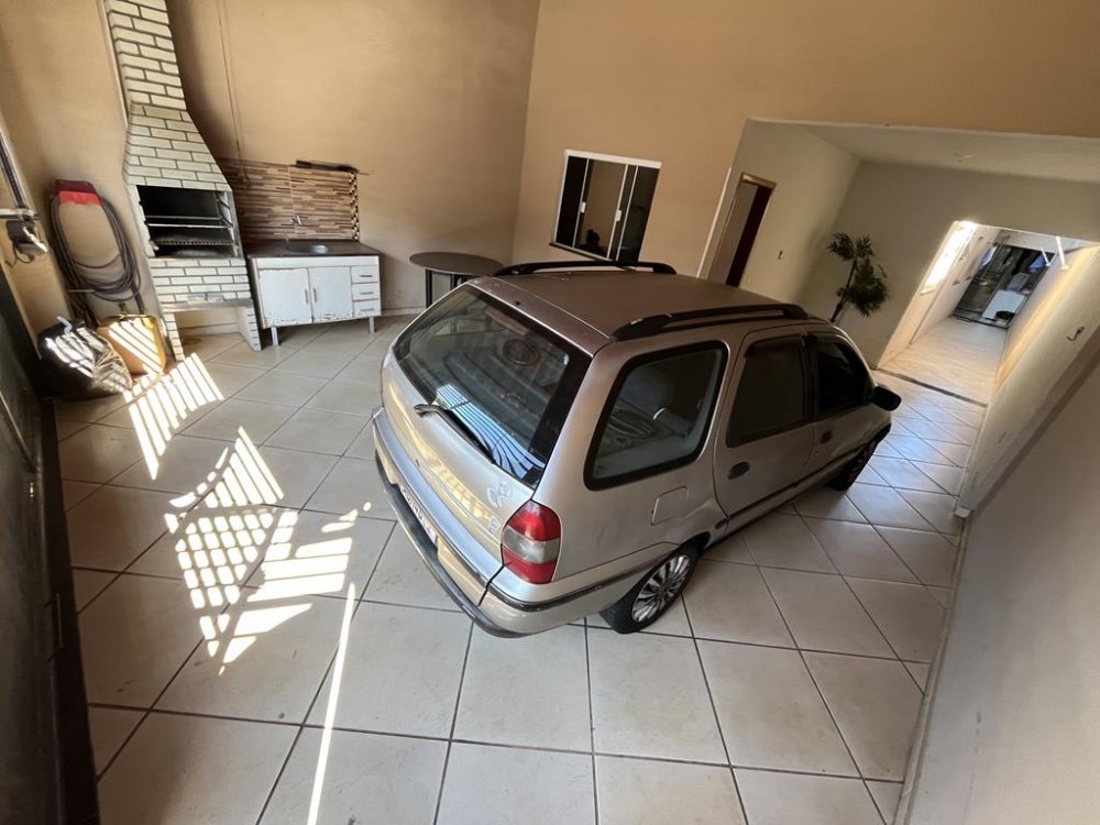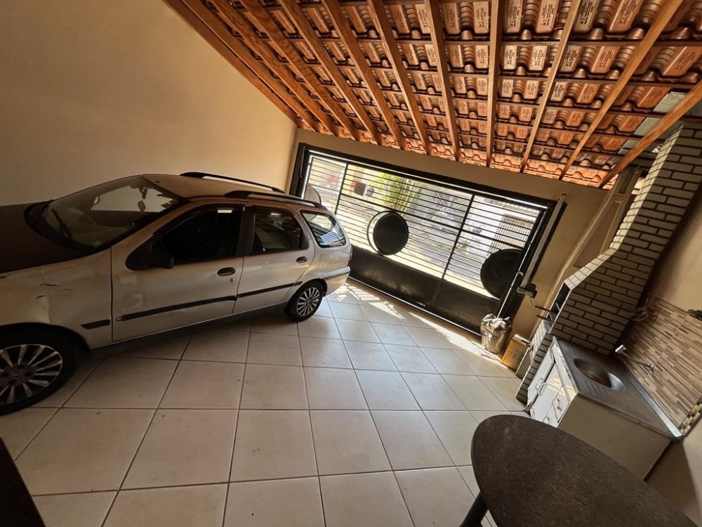 Área Frontal com Garagem pra 03 carros pequenos e churrasqueira pré-moldada com pia e gabinete.
