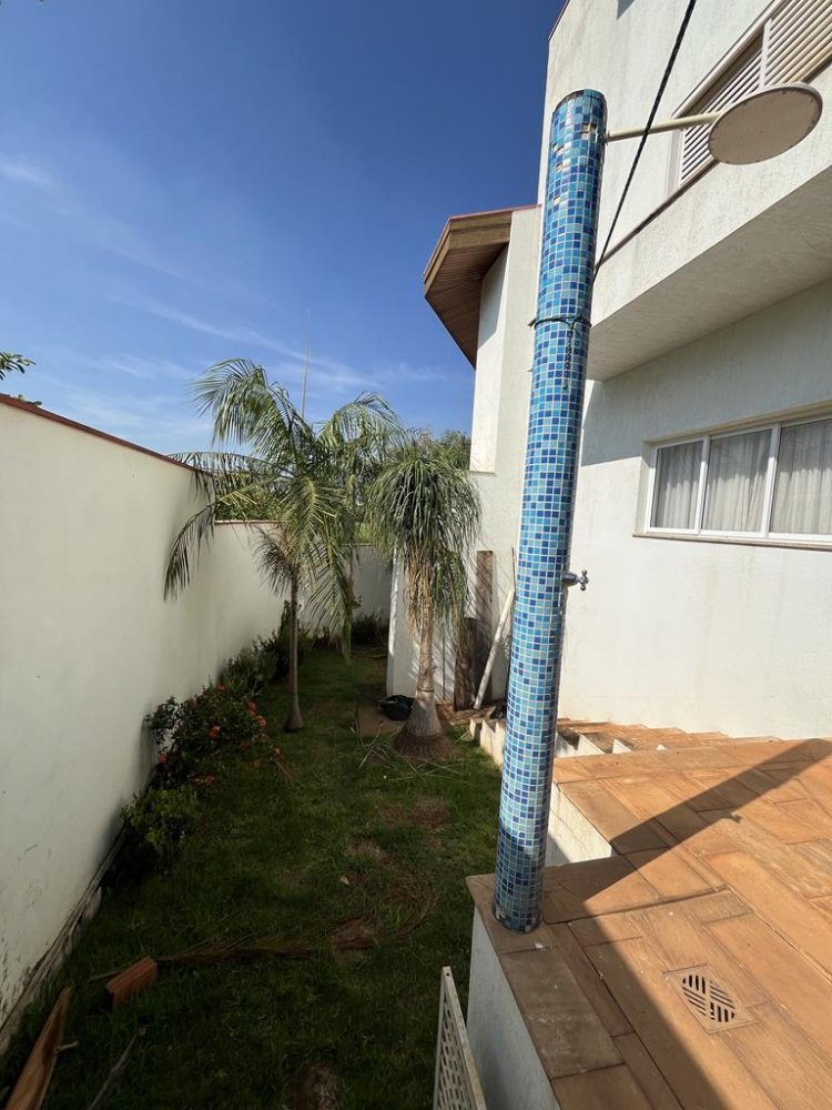 ÁREA FRONTAL E ÁREA LATERAL DO IMOVEL SÃO BEM AMPLAS COM BOA PROFUNDIDADE QUE CONTAM COM 2 PORTÕES ELETRÔNICOS COM ACESSO ÀS 4 VAGAS DE GARAGEM COBERTAS.