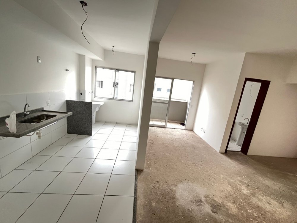 COZINHA CONJUGADA COM ÁREA DE SERVIÇO; LIVING ESTENDIDO COM SALA COM CONCEITO MODERNO ABERTO QUE ACOMODA 2 AMBIENTES DE JANTAR E TV CONECTADOS A SACADA COM VISTA LIVRE; 1 WC SOCIAL, 2 DORMITÓRIOS (SENDO 1 COM SUÍTE) E 1 VAGA DE GARAGEM.